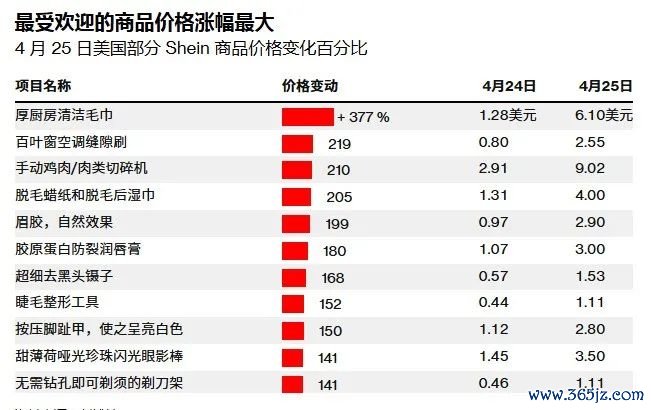 Shein将美国市场部分商品价格最高上调至377%
